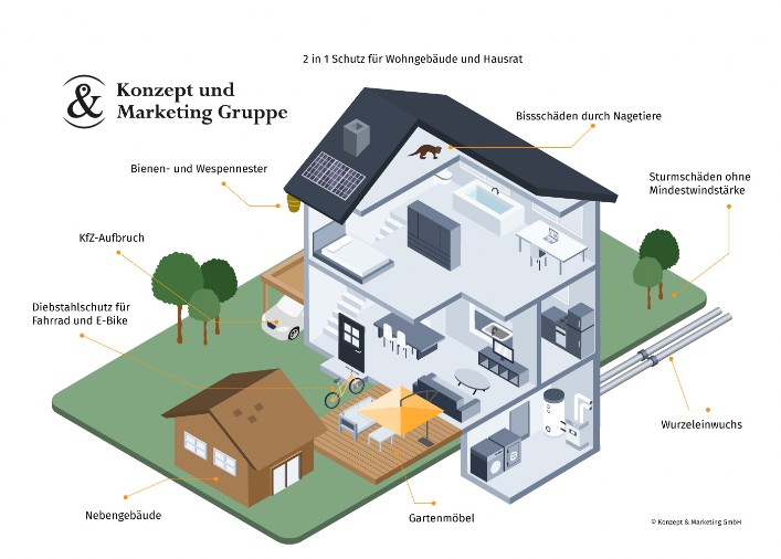 - Schutzbriefleistungen inklusive (Umsiedlung von Insektennestern, Schädlingsbekämpfung, Schlüsseldienst)